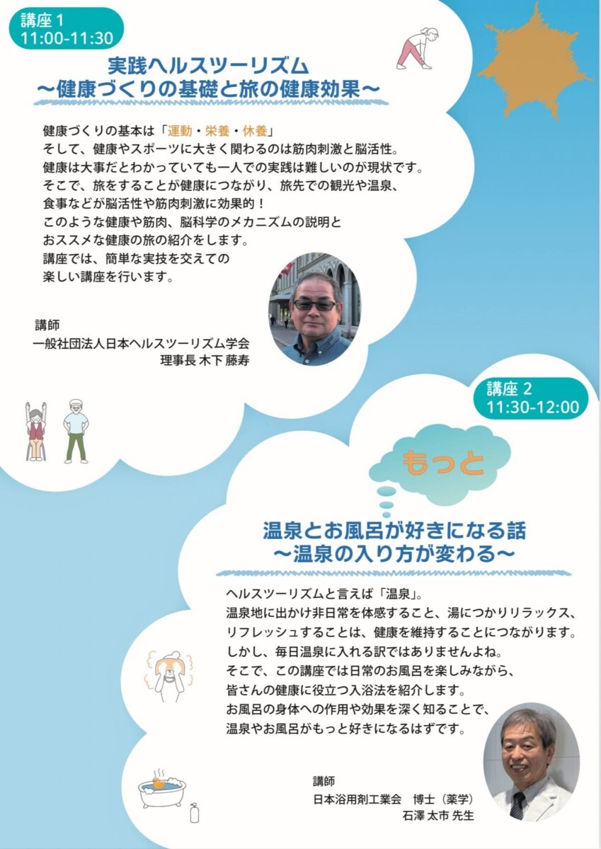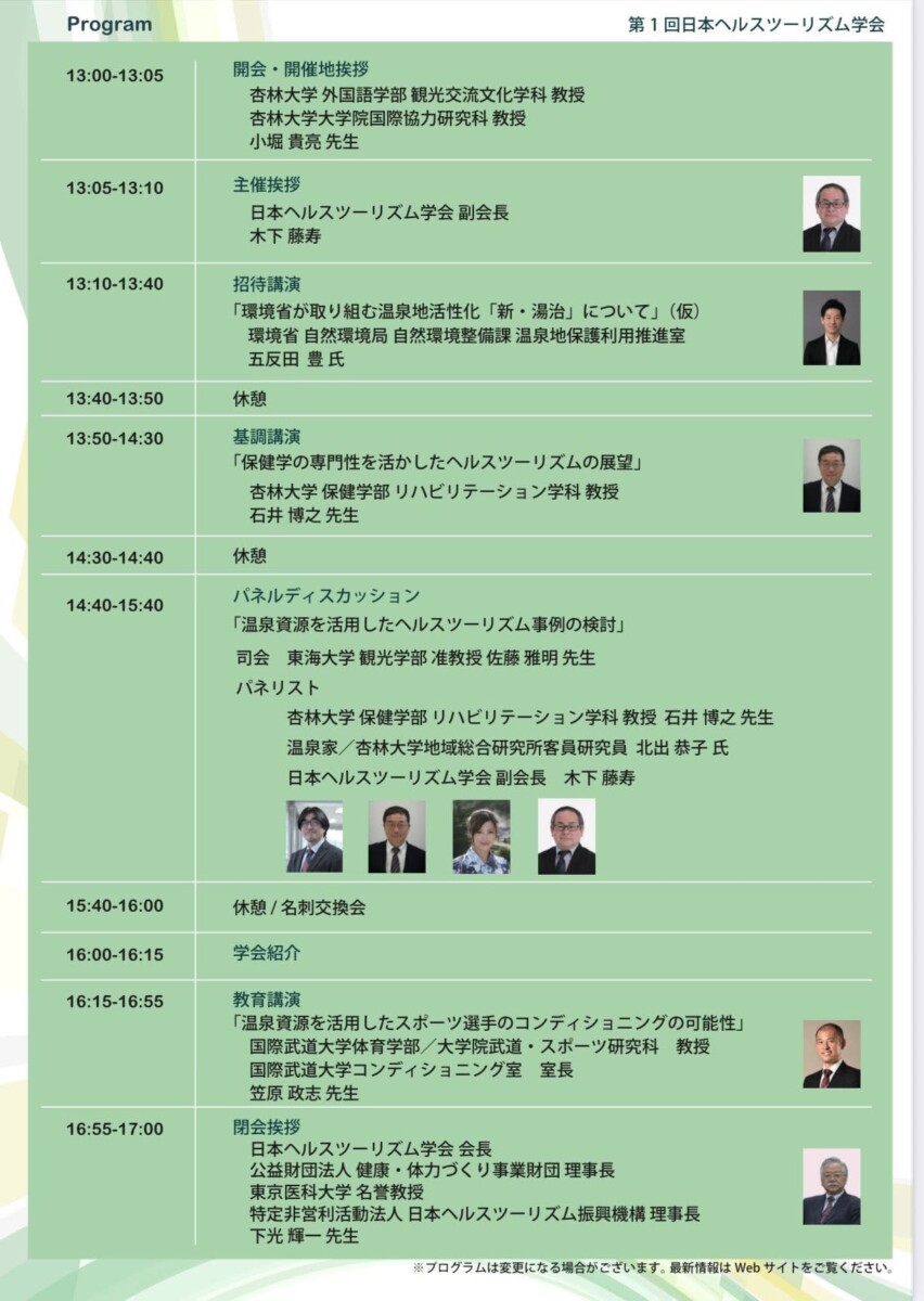 「-温泉資源を活用したヘルスツーリズム事例の検討-」ということで、温泉や入浴にまつわる様々な先生による講演があります♨︎